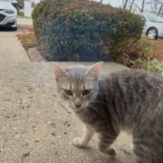 Grey tabby with grey stripes, seems to be young or kitten