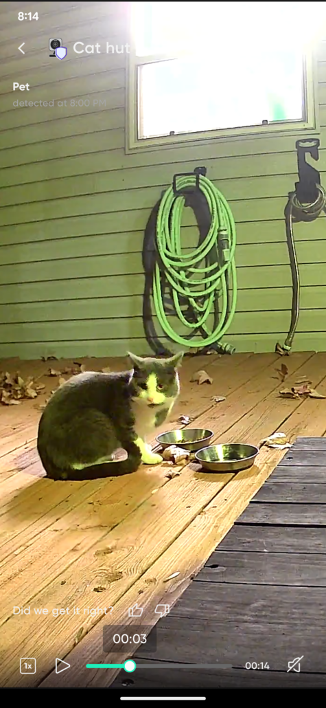 Gray and white cat has been coming for food for the last week or so. Not sure if it’s feral or if someone is out there looking for them. Very skittish. Proof of ownership required.