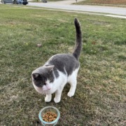 litterbox trained, hungry, super friendly. very vocal. clearly someone’s cat, wants inside. checking for microchip tomorrow depending on the snow storm.