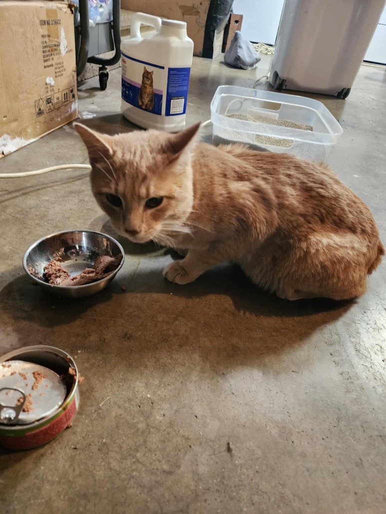 1-3 year old intact male. Buff beige orange tabby. Talkative, very affectionate. Ran up to our car in the cold.
