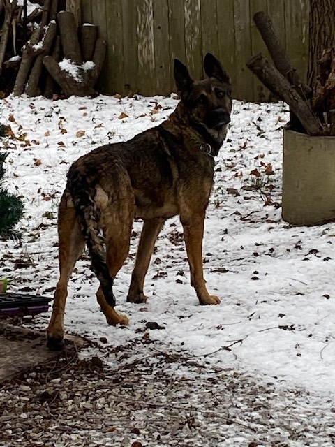 German Shepherd, Dutch Shepherd or Belgian Malinois, dark mask, possible brindle coat, maybe dirty. White patch on neck. Very lean, chain collar, no tags. Very timid but sweet, not able to get close enough to scan. Female or neutered male. Wandered into yard, now staying in garage. 66th & Broadway, Broad Ripple. Proof of ownership is required.