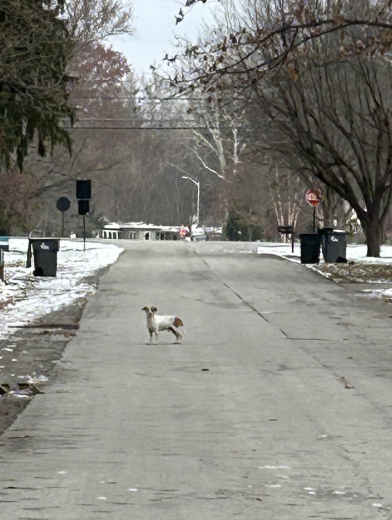 jack russell / mix maybe — white and brown spots, very shy would not allow us to get closer for a better picture. seems to be running around area (one other sighting sounds like this dog), feel very bad as it’s freezing. ran north across 75th.