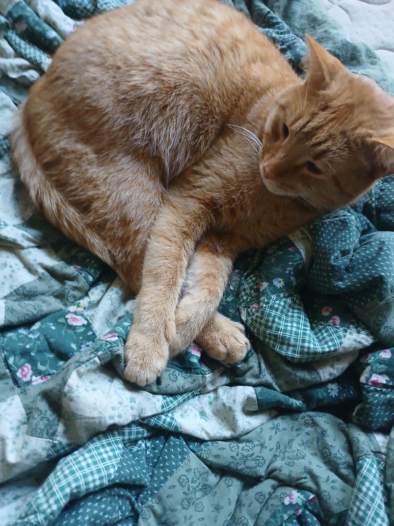 Oange tabby with white around his face