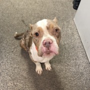 Friendly female Pitbull no chip no tags on collar. Proof of ownership is required