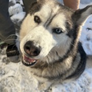 Found Bella Dai Jones 12/5/2025 on the street around 3:30pm. She has a purple collar and tag, but no phone number on it. Bella is an older husky with mostly white and some brown and black. She has one blue eye and one brown eye. She is very friendly. Please reach out if she is yours and provide proof that she is your dog.