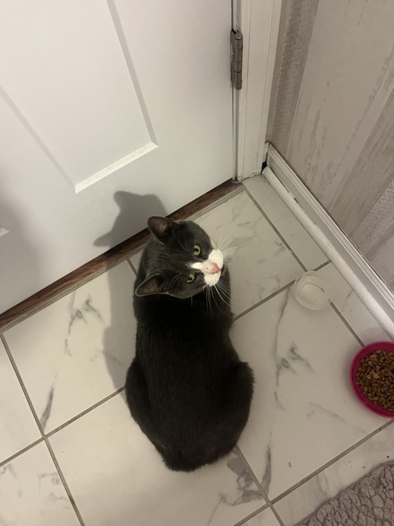 Found male cat. No microchip. Grey and white with a grey chin. Proof of ownership is required.