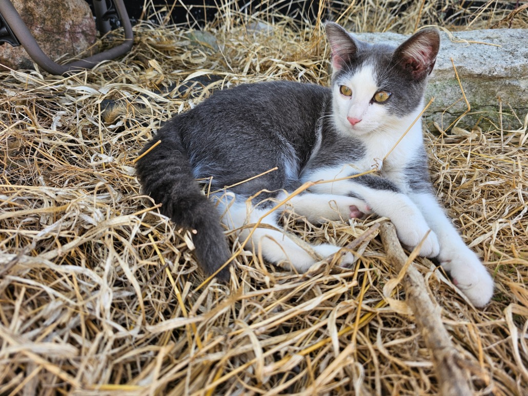 little stray cats, white and gray