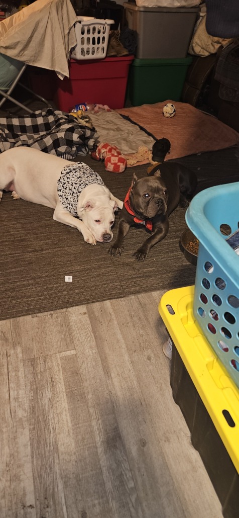 I have two missing Lily the white female and Bobo my mail Lily is all white Bobo is dark chocolate or whatever you call that color somebody broke into my apartment stole everything and turned my dog’s loose