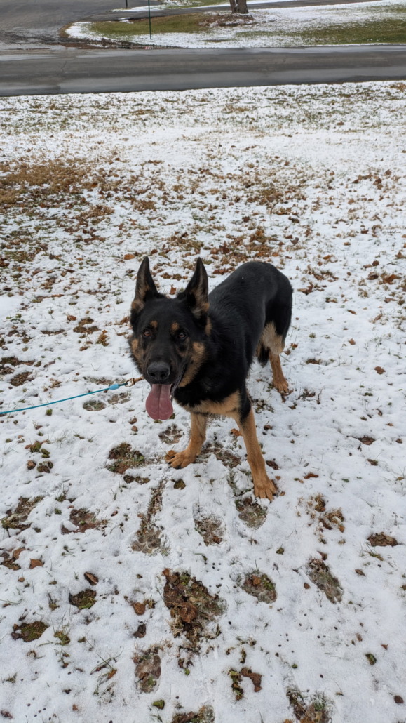Large male dog found roaming yard in New Palestine, IN. German Shepherd looking. Brown eyes. Wearing a collar. Proof of ownership required. Must know color and type of collar.