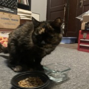 Found dark colored female tortie, appears to be fairly old. Very loud when she wants to be.