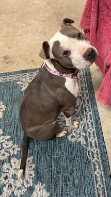 Friendly young pitbull. She is about 30 pounds and appears to be trained to a certain extent.