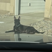 black, tall ears, long tail, playful with a loud, deep