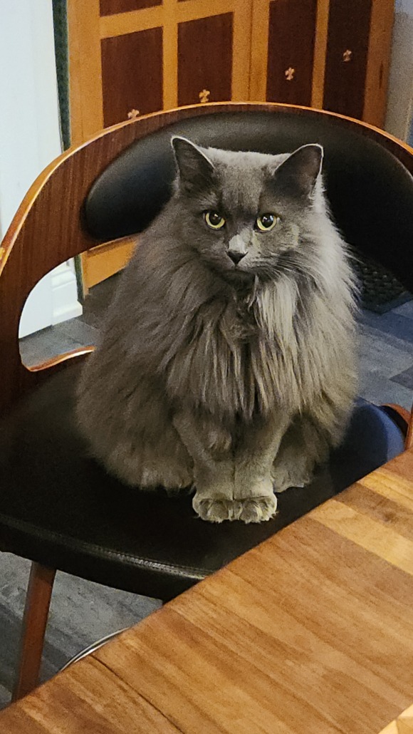 Gray fluffy friendly pet. She’s indoor/outdoor and was last seen 5 pm Dec 23. She may come with a wet can food or treats being shaken. If you crouch and put hands out she may come to you.