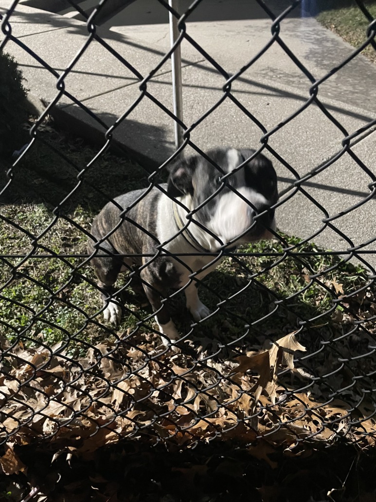 Brindle pit bull was found wandered into the yard of a church. Very friendly and had collar on.