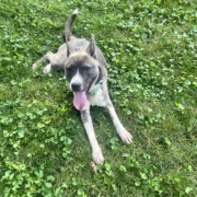 He is a German Shepherd Husky mix he can be friendly but when he doesn’t know anyone he can be mean he is about a year old