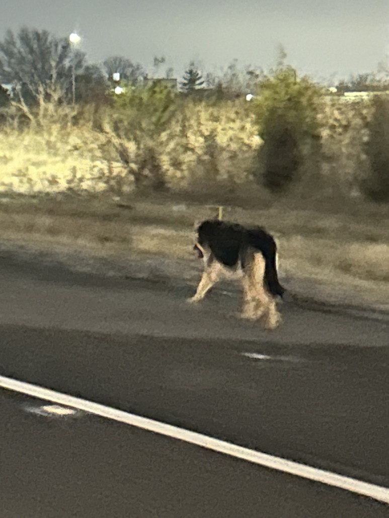 Seems to stick to the side of the road but when you drive alongside or get out of the car they lose situational awareness and wander into the lanes. Will take food. First spotted near Motel 6 you pass as you head north upon leaving the airport.