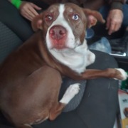 Russet brown with white. Very friendly , look well taken care of. Maybe less than a year. Proof of ownership required.