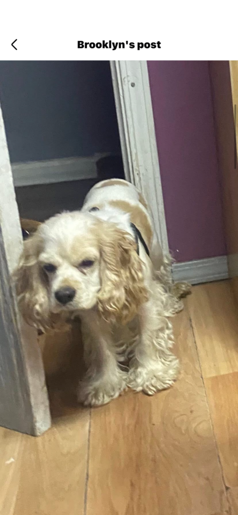 She is a white and brown cocker spainel she got out yesterday with her brother and most likely will be found with him