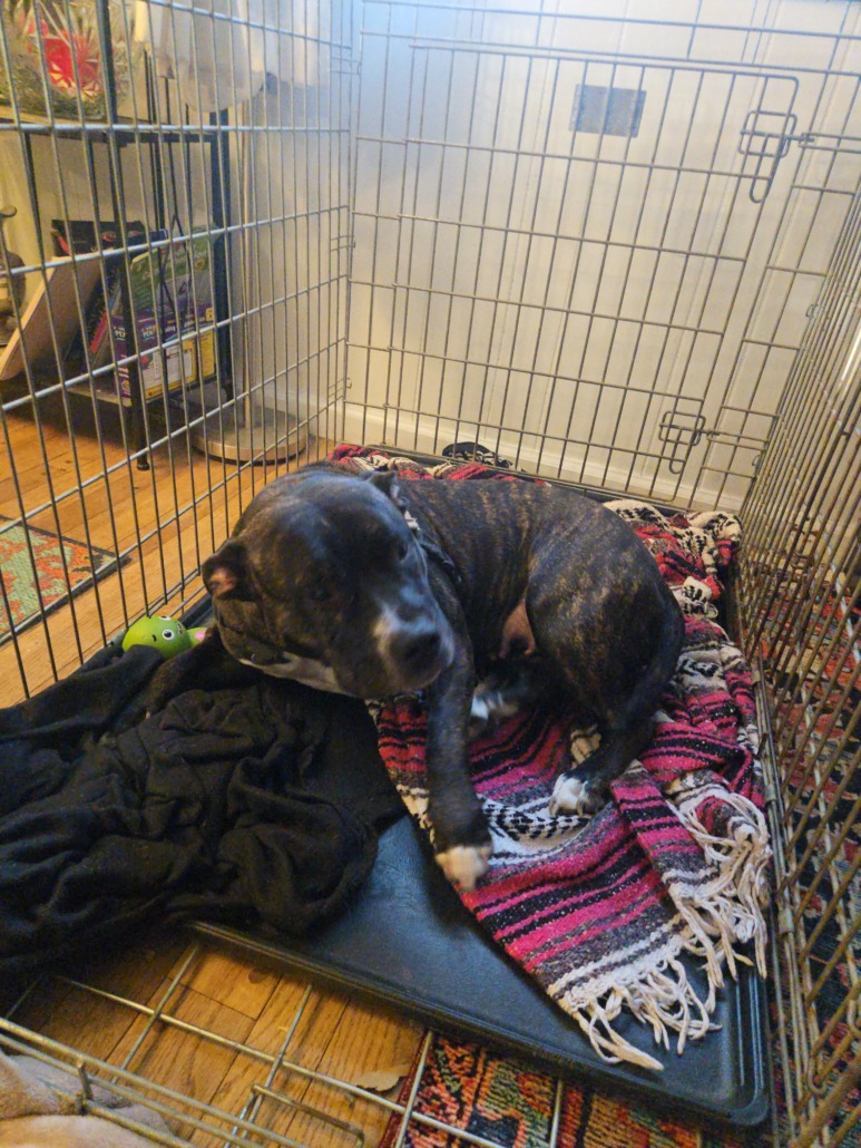 Willow is a terrior mix, brindle, very friendly. She is probably lost amd cannot fo d her way home. Please let me know of you fin