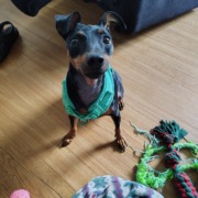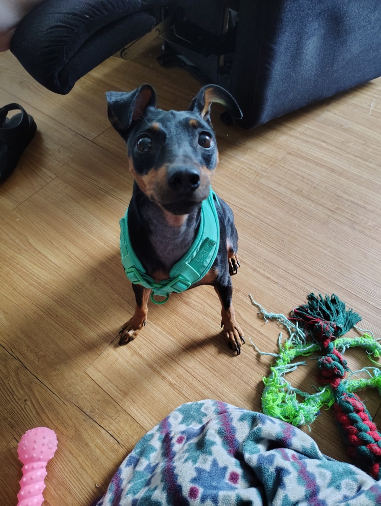 Cora is a pure red Miniature Pincher with the classic black and tan coat she has been spayed unsure if she had been chipped we’re second owners of Cora She a super sweet girl she’s almost 2yrs old