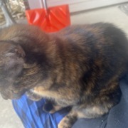 Tortoise cat bright green eyes. Pink collar with bell. Prof of ownership is required. Found in Decatur Ridge community behind Decatur High School. Off of Mendenhall road
