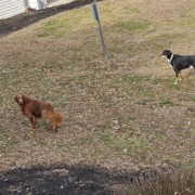 2 dogs have been in the wylde apartment complex since new years day. One reddish golden retriever one black large dog. Staying together. Both have collars, but no phone numbers.