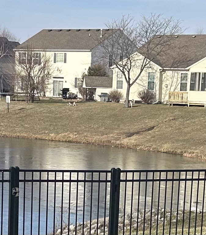 One was smaller and one was larger, but I think they were both about the same coloring. Both seemed to be multiple colors. Some black, I think some white and I think some tan. They were exploring together.