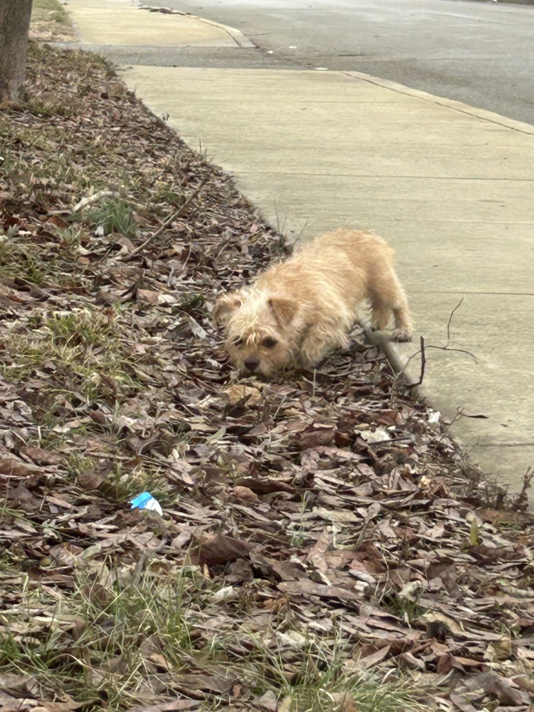 Dog Sighting! Small blonde, I believe female. Hanging around a grassy area on corner of 31/Ruckle. Food motivated but would not let me approach it, very skiddish. No collar that I saw.