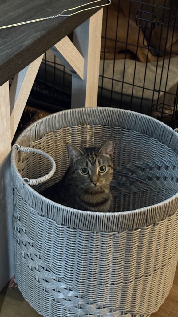 Small tabby. With tipped ear. Very loving and very vocal. Super soft tummy.