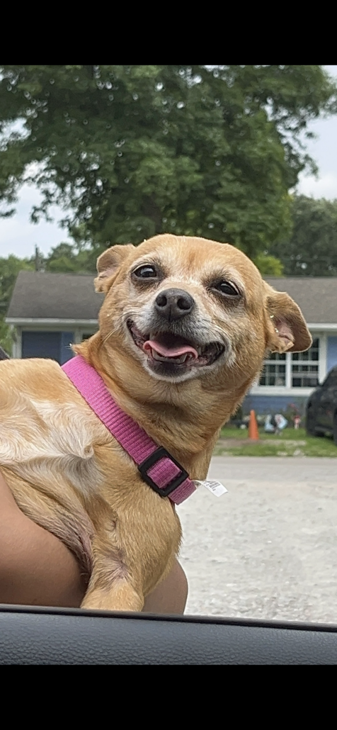 Her name is Chiquis she usually barks to strangers but she will answer to Chiquis, Chetto, Chiquilina she’s a little chubby