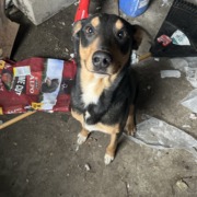 My mom has been taking care of Yunior/Junior and he started to be comfortable with my mom. he is mostly black but has brown and white fur. I think he is a grown dog and he is not microchipped. Please help because I can’t take care of this dog because of my allergies and he seems aggressive with people and he has been kept in my garage garage with food water and a heater.