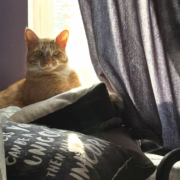 Large male orange, has a big nose, neutered, very friendly, not an outdoor animal might be scared