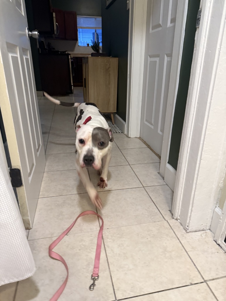 Found white pit mix on Hawthorne and 9th St in Irvington at 4:15pm on 1/9/26.