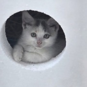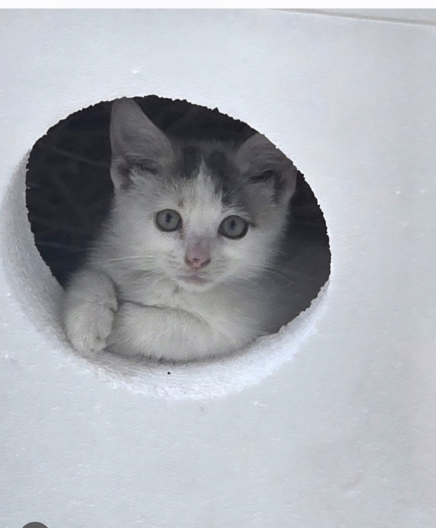 Small.kitren white with little Grey and tan on head and tail