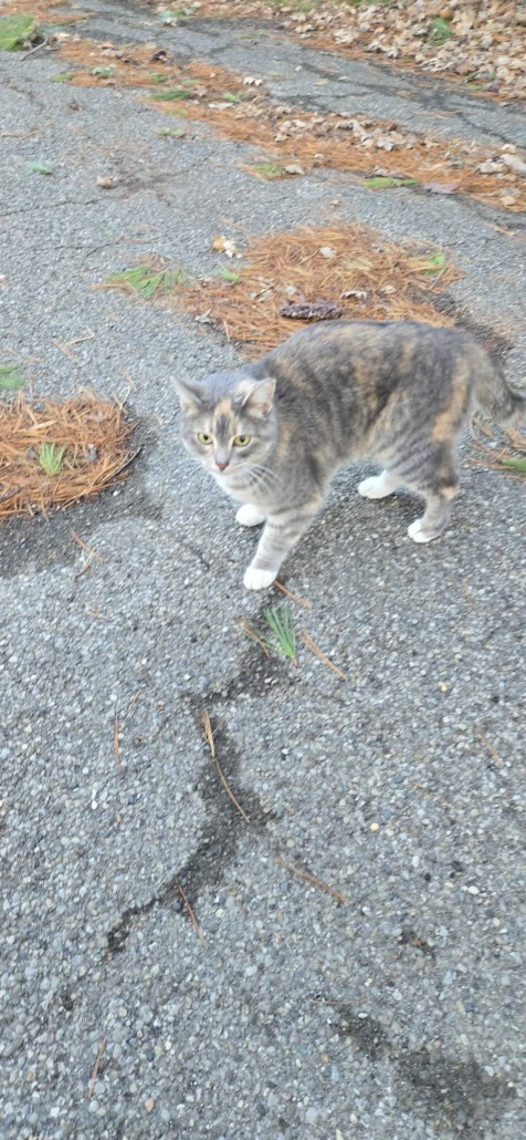 Dilute calico possibly female with left tipped ear. Might be less than a year old. Well groomed and healthy just thin. Took off will keep eye out. Proof of ownership is required.