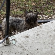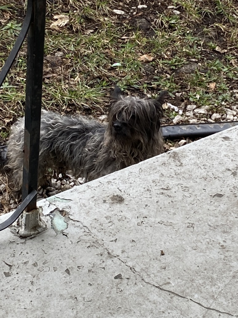 Grey Cairn Terrier , fur is wet and matted