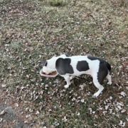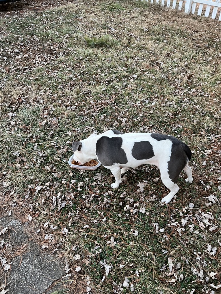 Small bully breed female. She’s skittish but will approach for food and seems fairly well taken care of. If she’s yours please provide several pictures as proof.