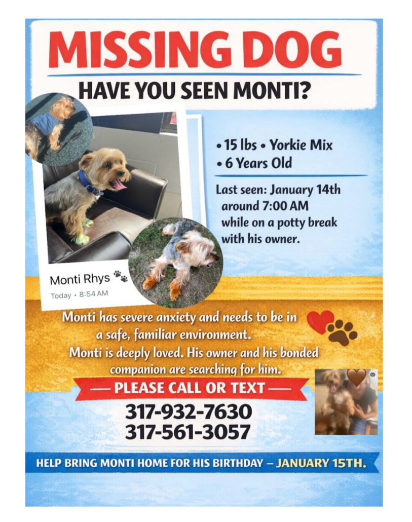 Lost Dog, Alert #95146 Monti missing near 62nd Allisonville, Indianapolis46220