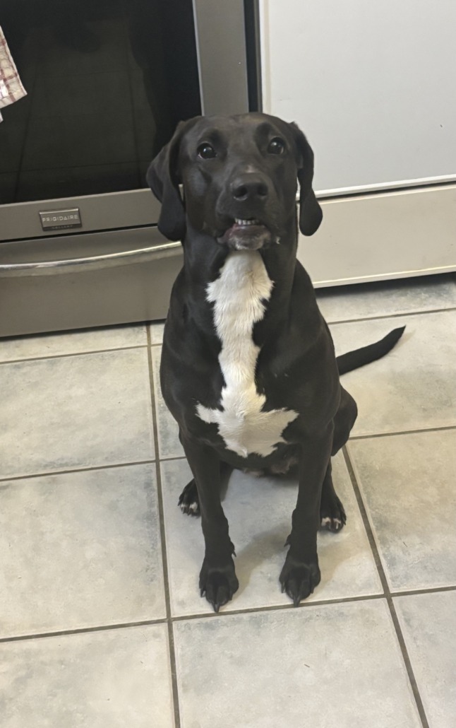 Brown female, almost black. Very friendly and sweet. Found in ditch in southern Johnson County. No collar or chip.