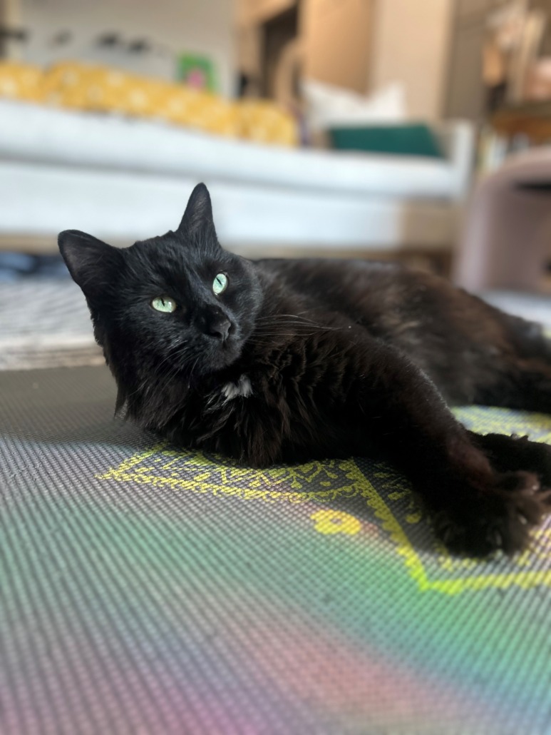 Taquito is a very nice and shy black fluffy cat. He is probably scared; he is usually timid in front of new people but loves cuddles and loves wet cat food.