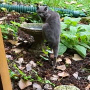 Vesta is about 8 years old completely gray. Her left ear was clipped, and she was spayed when she came to us. She is an indoor/outdoor cat and is very sweet. She has been inside a lot more as she has gotten older. She had been missing a long time but is used to wooded areas. I hope someone has taken her in, but we would love for her to be back home with us. She has been with us for approximately 7 years came walking through the woods to our yard and stayed.