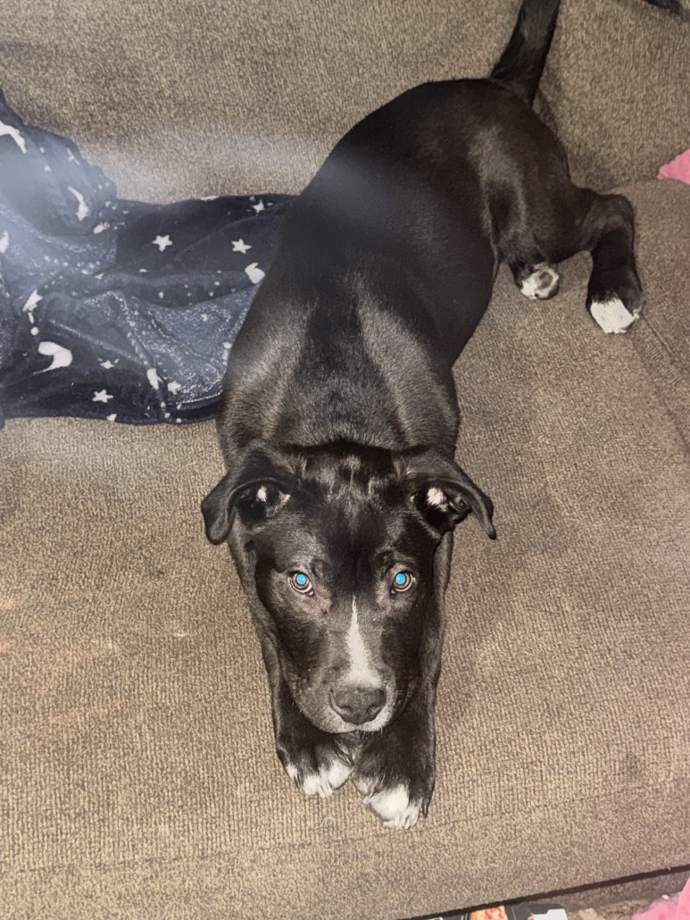 Super sweet pupper; may have been lost for a while as his ribs are visible. Proof of ownership required. Black and white in color