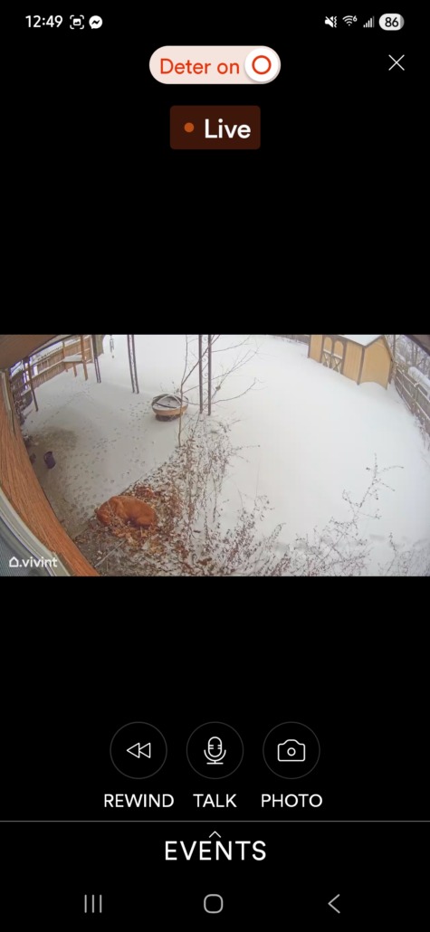 Red & white color. Has a tan collar with no words on it that I could see. We tried luring him into the truck to get him out of the cold but he fled and hopped fences.