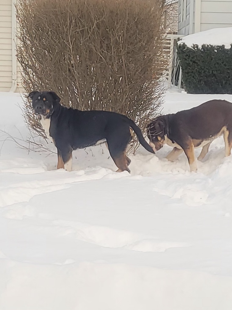 Two dogs running around together. They did not seem aggressive but I didn’t attempt to pet or touch them. I think one might be male and one female. Possibly.