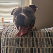 Pet walked up to my house, banging door to get in. He is a big, muscular pitty that is brindle in color. Seems young, ~1 yr old. Knows some tricks and seems potty and kennel trained. Seems to be okay with other dogs (my dog is aggressive towards others).
