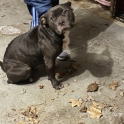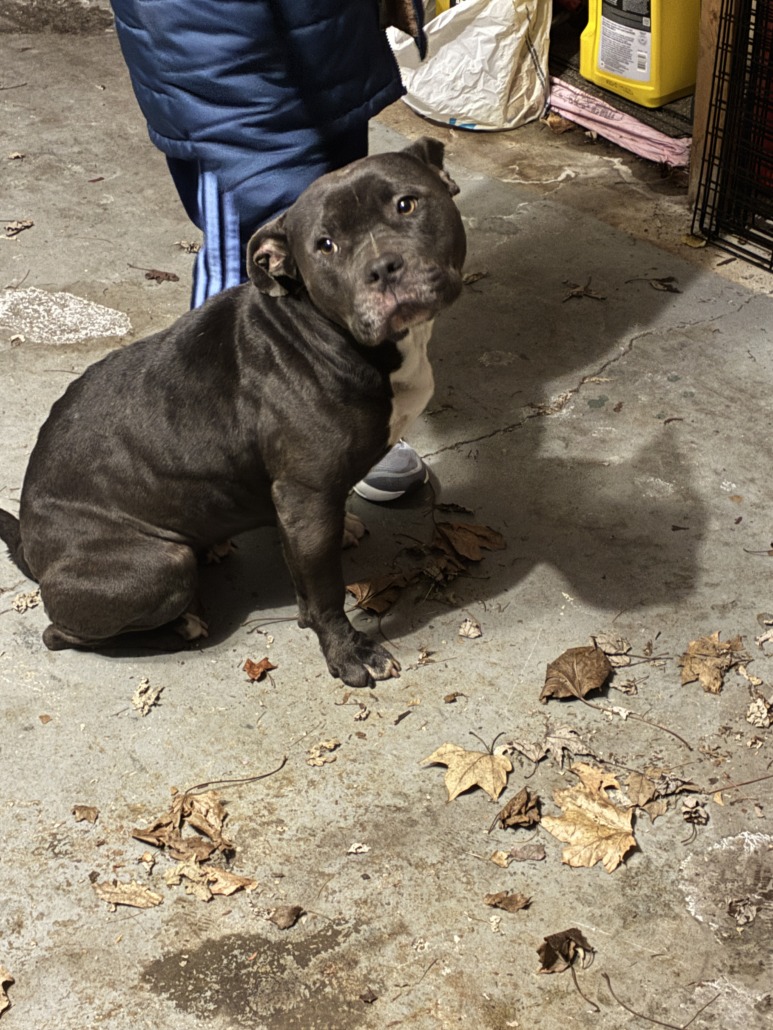 Found female dog off stop 11 & Shelby st near Perry park. She’s very sweet. Grey with a white chest and some white on the paws.