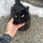 I found the cat on an old chair behind the old Sam’s Club with a collar on. The cat is very friendly
