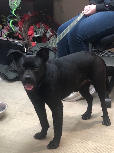 Young, all black. About 25 pounds. Was found outside on 30th and Mitthoefer Rd with a collar and leash attached to it. No tags on the collar.