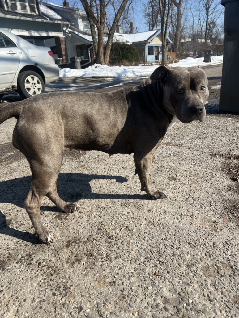 Pitbull mix. Looks about 4-5 years old. Found around south Garfield park with no collar. She was hesitant to come up to me and ran away when trying to get her to come with me