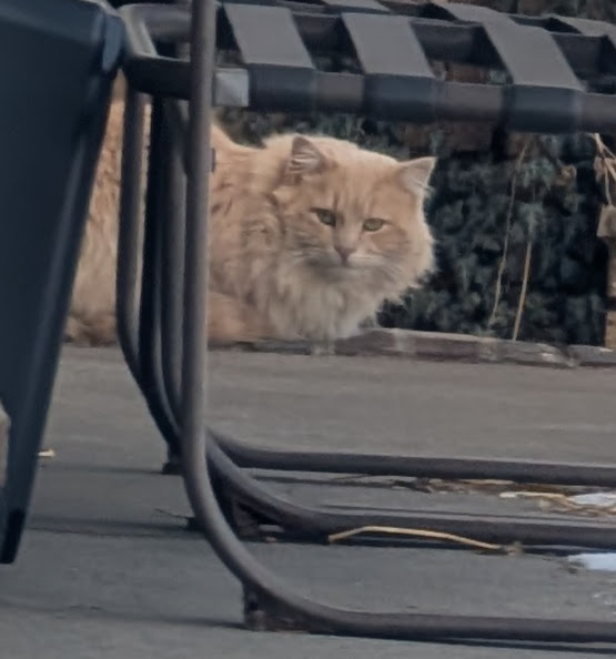 Long hair orange cat seen on 8 Feb and 11 Feb. Has been eating from community cat feeding areas. Appears uninjured but skittish. Hair does not appear matted or dirty.